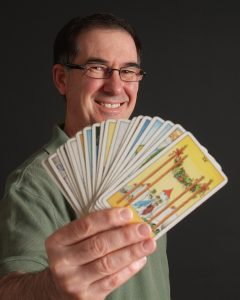 A recent study found that it takes 7 complete shuffles of a deck of playing cards before they are randomly dispersed in a pack.* A Tarot deck has 26 more cards than a normal deck of cards, so it takes about 9 or 10 shuffles before your subconscious has enough opportunity to sort the cards into the appropriate order for an accurate Tarot reading.